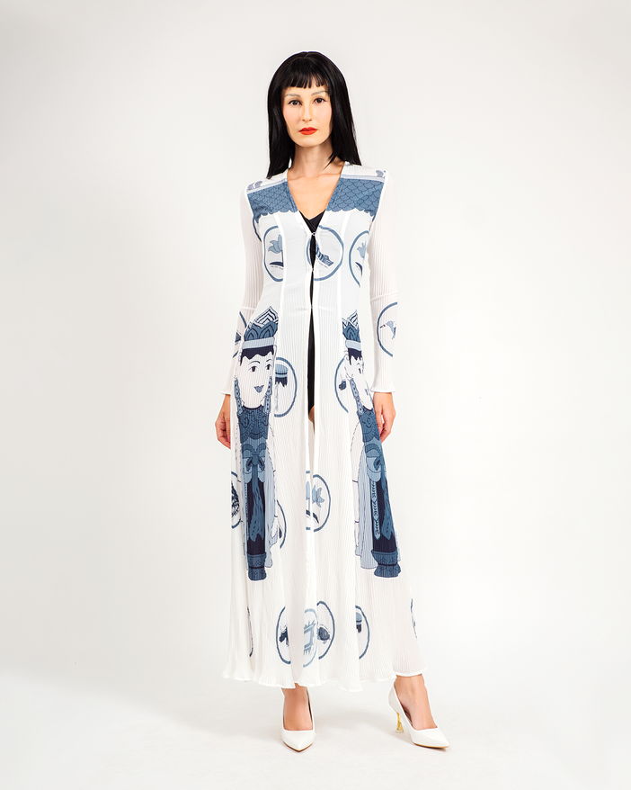 Women bathrobe in athletic style – exclusive printed by Yvette LIBBY N’guyen Paris Charming, soft, flexible, cool, durable and elegant – it’s all about this ideal silk bathrobe for you in this summer. Bathrobe WATER PUPPET is finely created by Yvette LIBBY N’guyen Paris in the fusion of art and function, with the charming silk. Designer Style ID: YLNWaterPuppet001Black&white Colour: Cannoli Cream White (Pantone 11-4302 TCX) with printing pattern Designed in France - Made in Vietnam Composition: Fabric: Silk in pleated technique Print: Vietnamese Cultural Water Puppet - exclusive printing pattern Tag: Premium Nubuck leather with laser cut Washing instructions: Normal (recommended with washing bag). Packaging: Luxury box, guiding book and price tag to international standard. A great gift idea for family, friends, colleagues and business partners. Size: Our size chart is European standardization. Tell us anything special about your body size (if any) for an adjustment accordingly, for free of charge, via crm@yvettelibby.com. 𝐒𝐢𝐳𝐞 𝐜𝐡𝐚𝐫𝐭: XS, S, M, L, XL _Size XS or Europe 36 (Height: 164cm-170cm, Chest: 82- 85cm, Waist: 64-67cm, Hips: 90-92cm) _Size S or Europe 38 (Height: 170-176cm, Chest: 86-91cm, Waist: 71-76cm, Hips: 104-107cm) _Size M or Europe 40 (Height: 176-182cm, Chest: 96-101cm, Waist: 81-86cm, Hips: 109-113cm) _Size L or Europe 42 (Height: 182-188cm, Chest: 106-112cm, Waist: 91-96cm, Hips: 114-118cm) _Size XL or Europe 44 (Height: 188-194cm, Chest: 116-121cm, Waist: 101-106cm, Hips: 119-123cm) WATER PUPPET Cruise: Petit collection for your summer catwalk This summer, under the sweltering heat, visiting the beaches seems like an ideal scenario. How do you look stylish even while enjoying your vacation? A beach bathrobe is a go-to option that both protects your skin and helps to accentuate your gentle charm through its elegant silhouette and delicate stitching. Texture is an indispensable detail to adorn a striking cape, to create a beach gown with aesthetic and cultural value, Yvette LIBBY has taken inspiration from art Water puppetry in Vietnam to breathe life into the beach fashion in the West. Water puppetry is a type of traditional cultural entertainment in Vietnam. The unique thing right from the name "Water puppetry" is to use water as a performance stage. The surface of the pond is a stage, an environment, a scene, and a supporting character for puppets operating under the talented control of artisans. Each water puppet used for the performance is handmade and has a variety of shapes, gestures, expressions, and costumes. The vibrant colorful patterns and uniqueness of this culture will be realized by Yvette LIBBY through "WATER PUPPET Cruise" - this summer's launch of the beach bathrobes. Culture always plays an indispensable role and is the pride of each country. That is the spiritual value that each nation always tries to preserve. With all respect for the culture in Vietnam, Yvette LIBBY breathes life into each design with 9 outstanding motifs including: peacock, turtle, carp, buffalo, lotus flower, fishing basket, king hammock, festival flag and puppet.