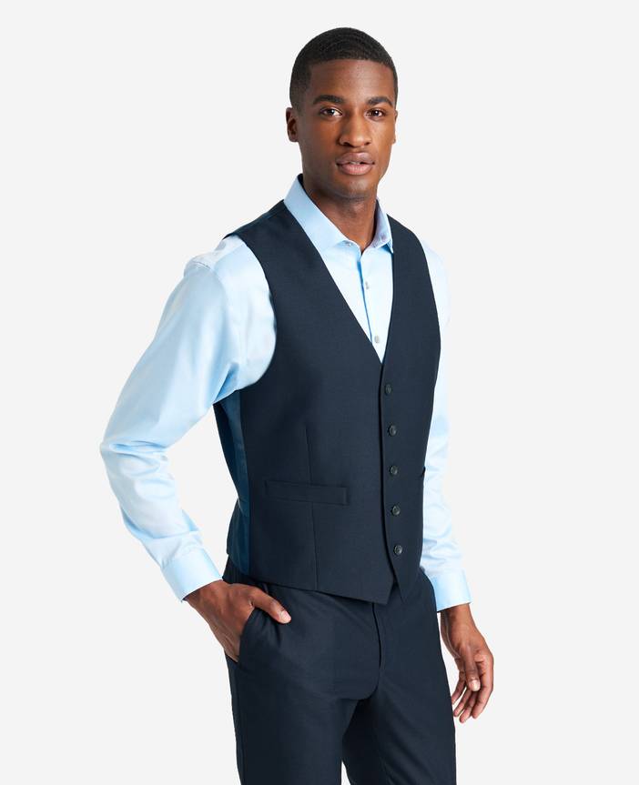 WHAT’S IN IT FOR YOU? Kenneth Cole Reaction men's suit vest Slim-fit Wrinkle-resistant A comfortable feel with a professional look, thanks to our performance stretch suiting fabric Welt pockets Designed for increased range of motion and an improved fit Double vented for a great fit with extra mobility Single-breasted with matching shell-look buttons Fully lined Dry clean only Poly/rayon/spandex blend Imported | Reaction Kenneth Cole | Ready Flex Slim-Fit Suit Separate Vest in Navy, Size: SLL by Kenneth Cole