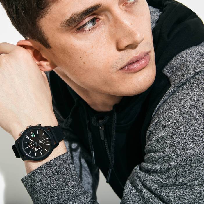 Lacoste 12.12 Herren-Chronograph mit schwarzem Silikonband