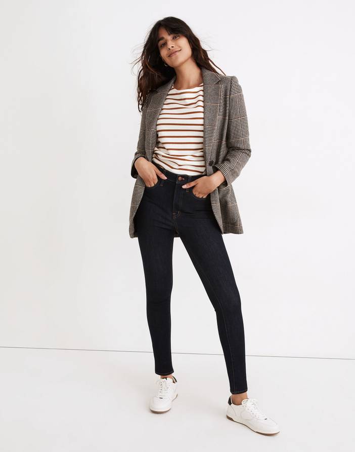 The cut: Complete with the holds-you-in sorcery of our Magic Pockets® in front, these sleek skinny jeans are true comfier-than-comfy jeggings. The fabric: Our Roadtripper Supersoft denim has both-ways stretch for maximum flexibility (aka you can do some quick midday squats no problem). 9 3/4" high rise, fitted through the hip and thigh with a 10" skinny leg opening, 25" inseam.57% cotton/25% poly/14% rayon/4% elastane Roadtripper Supersoft denim.Do Well: We partner with the Better Cotton Initiative to improve cotton farming globally.Magic Pockets®.Machine wash.Import.5'4" and below? Try our petite inseam; 5'9"-5'11"? Choose Tall.File under: Madewell jeans for women.Madewell.com only.