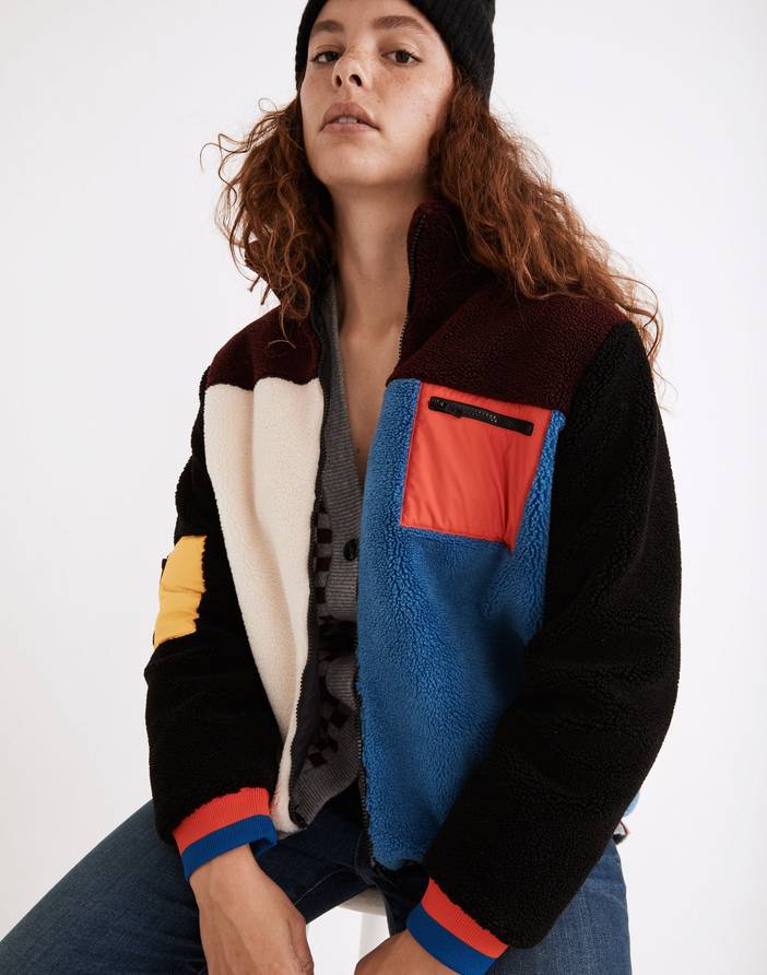 NYC-based Kule is known for combining French chic with American style (hint: the name is pronounced "kyewl" which is you know, so cool). Made in the USA, this fluffy fleece jacket comes in a bold colorblock design and has tons of zip pockets. Poly fleece.Made in the USA.Madewell.com only.