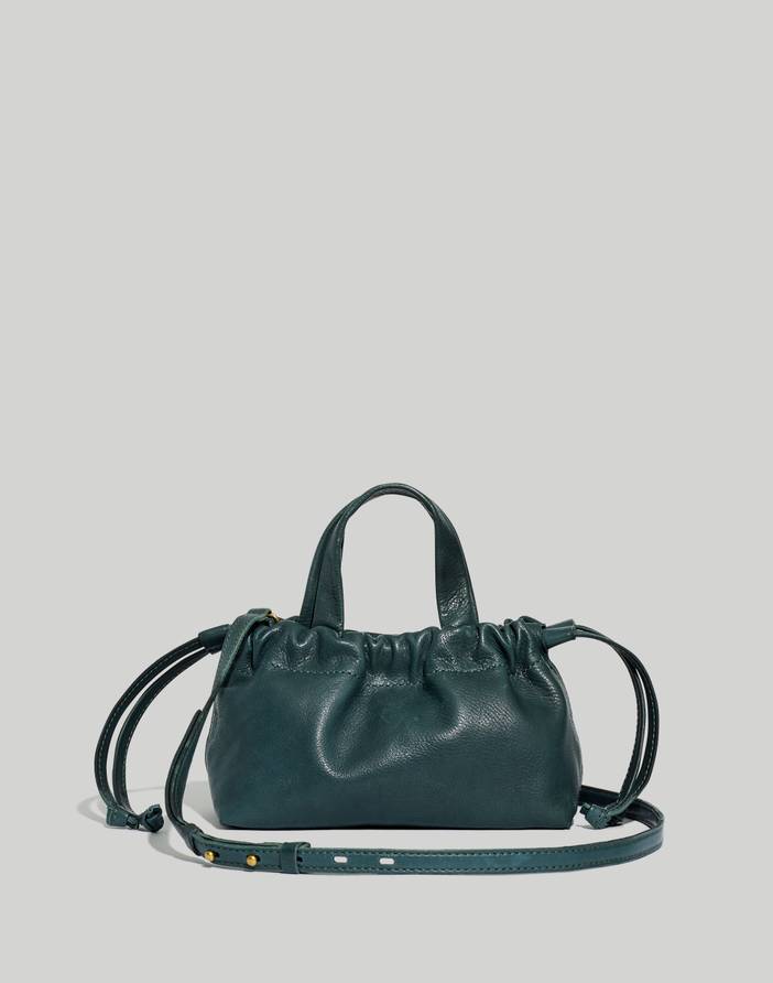 Welcome to the Piazza. Our luxurious new bag family features unstructured shapes, bold colors and supersoft, sustainable leather. With a cinchable drawstring, magnetic closure and an adjustable (and removable) shoulder strap, this mini crossbody can hold a phone, keys, lippie, hand sanitizer, face mask and sunglasses.Leather.Magnetic closure.Interior pocket.3 1/2" handle drop.22" strap drop.5 1/2"H x 11"W x 5"D.Imported.