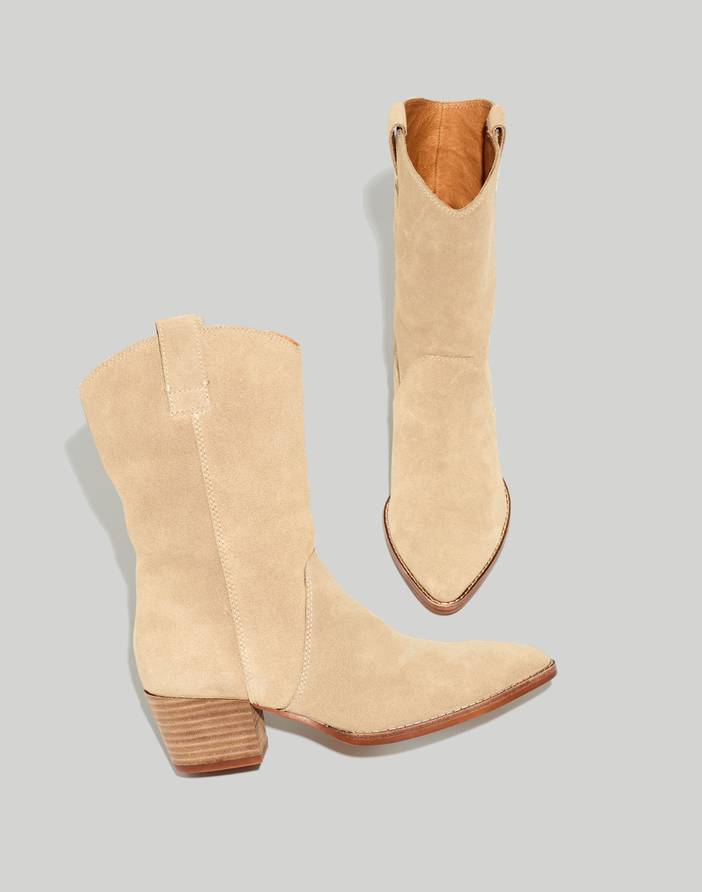 With classic western stitching, a taller shaft and a comfy stacked heel, this suede ankle boot goes with any and everything (plus, the pull tabs make taking them on and off a breeze). And, cushiness alert: our MWL Cloudlift Lite padding feels like walking on a...well, you know.When you select your size, "H" equals a half size.2 1/4" heel.Suede upper.Pigskin lining.Man-made sole.Do Well: leather sourced from a tannery that achieved a Gold Rating from the Leather Working Group (LWG), an organization that works to promote sustainable environmental practices in the leather industry.Import.Select stores.