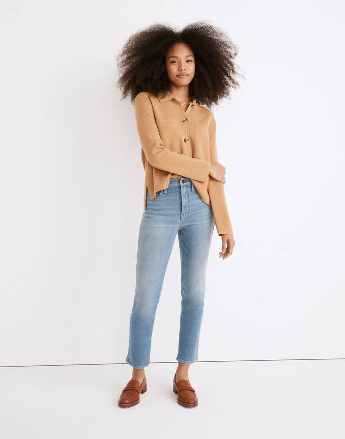 The cut: complete with the holds-you-in sorcery of our Magic Pockets® in front, these stovepipe jeans have a not-too-skinny, not-too-wide straight leg. The fabric: premium Orta stretch denim that hugs the body and bounces back like a pro (aka no 3pm bagginess). 10" high rise, fitted through hip and thigh, 12 1/2" straight leg opening, 25" inseam.Premium 98% cotton/2% elastane high-stretch Orta denim.Magic Pockets®.Machine wash.Import.nd below? Try our petite inseam; 5'9"-5'11"? Choose Tall.File under: Madewell jeans for women.