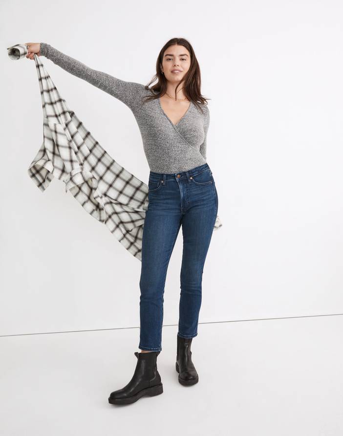 The cut: designed for an hourglass shape (see: narrower waist with a contoured band, a longer rise and a little extra room at the hips and thighs) and complete with the holds-you-in sorcery of our Magic Pockets® in front, these stovepipe jeans have a 9 1/2" mid rise for a laid-back vibe (they're great for everyone, but an absolute must if you've got a shorter torso). The fabric: vintage-y stretch denim that hugs the body and bounces back like a pro (aka no 3pm bagginess). Please note: choose your regular size—these jeans were designed for curves, so no need to size up or down.9.25.13.Premium 56% cotton/37% Lenzing™ Ecovero™ viscose/4% elastomultiester/3% elastane high-stretch Orta denim.Do Well: made with Lenzing™ Ecovero™, a sustainable fabric created with natural fibers and a more eco-friendly process.Magic Pockets®.Machine wash.Import.Madewell.com only.
