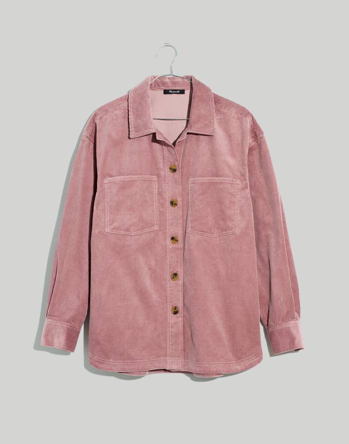 Crafted from touchable corduroy, this oversized shacket has flap patch pockets and a curved shirttail hem. The perfect throw-on-easy layer. Regular fit.Body length from high point of shoulder: 32 1/4".Cotton.Do Well: we partner with the Better Cotton Initiative to improve cotton farming globally.Machine wash.Import.Madewell.com only.