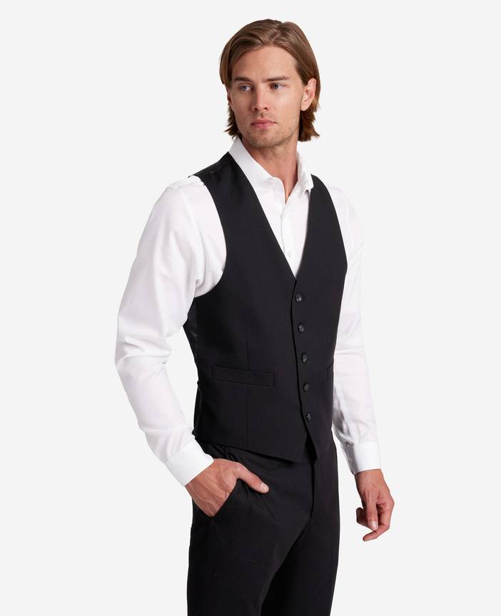 WHAT’S IN IT FOR YOU? Kenneth Cole Reaction men's suit vest Slim-fit Wrinkle-resistant A comfortable feel with a professional look, thanks to our performance stretch suiting fabric Welt pockets Designed for increased range of motion and an improved fit Double vented for a great fit with extra mobility Single-breasted with matching shell-look buttons Fully lined Dry clean only Poly/rayon/spandex blend Imported | Reaction Kenneth Cole | Ready Flex Slim-Fit Suit Separate Vest in Black, Size: SLL by Kenneth Cole