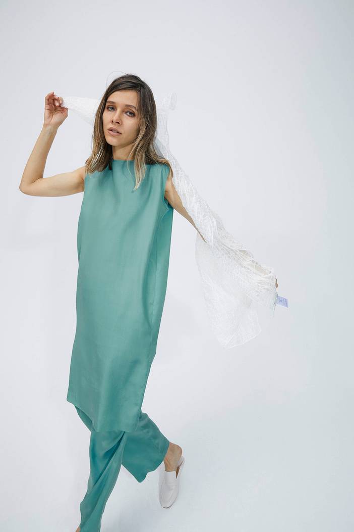 Suci Ananda Dress presented in bio silk. Maybe be worn alone or over trousers such as Lokya Escape Trousers