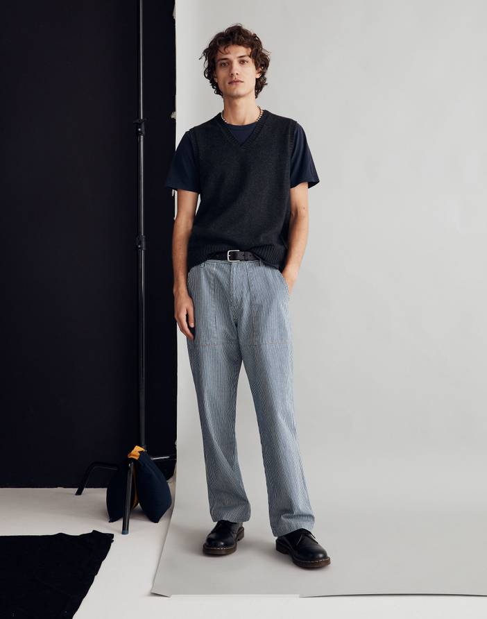 Kick back this season in our striped baggy surplus pants. They're made of 100 percent cotton and garment-dyed to feel broken-in and comfy from the first time you wear 'em.Loose fit.Rise: 12"; leg opening: 18 1/2".100% cotton.Do Well: By buying cotton products from Madewell, you're supporting our investment in Better Cotton's mission to help cotton communities survive and thrive while protecting and restoring the environment. This product is sourced through a system of mass balance and therefore may not contain Better Cotton.Tat Fung mill.10.1 oz.Zip fly.Machine wash.Imported.