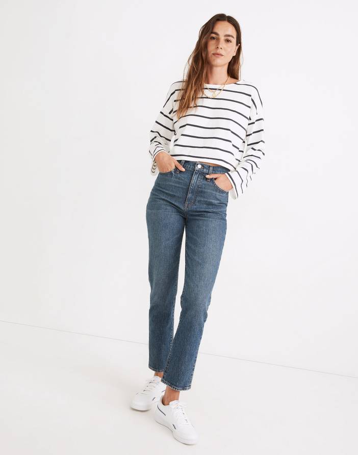 The cut: Complete with the holds-you-in sorcery of our Magic Pockets® in front, these are old-school straight-leg jeans cut just the way we like them: high, tight on top and totally sexy. The fabric: Premium denim that combines the holds-you-in structure of rigid with a touch of flattering stretch (they'll be so day-one comfortable you won't even unbutton at the dinner table—but, trust us, you'll look *chef's kiss*). 10 1/4" high rise, fitted through hip and thigh, 13" straight leg opening, 25" inseam.Premium 99% cotton/1% elastane Candiani comfort stretch denim.Do Well: We partner with the Better Cotton Initiative to improve cotton farming globally.Magic Pockets®.Machine wash.Import.5'4" and below? Try our petite inseam; 5'9"-5'11"? Choose Tall.File under: Madewell jeans for women.Madewell.com only.
