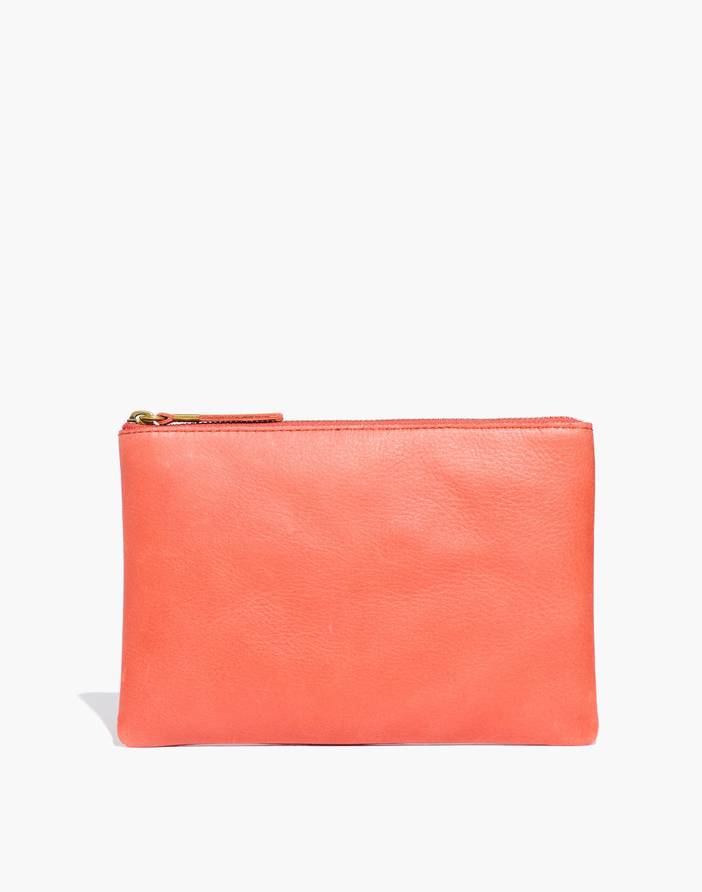 Made of rich leather, this streamlined pouch is fitted out with card slots and a snap-close compartment. Throw it inside your tote or carry it as a clutch—it's that versatile. Leather.Do Well: Leather sourced from a tannery that achieved a Gold Rating from the Leather Working Group (LWG), an organization that works to promote sustainable environmental practices in the leather industry.Zip closure.6"H x 9"W.Import.