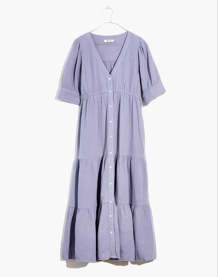 With cuffed sleeves and a button front for polish, this tiered midi dress is exceptionally comfy in our supersoft Lightspun double-layered cotton gauze. One to wear now and into the next season...and the next. Easy fit.Falls 51" from high point of shoulder (based on size 18W).Cotton.Pockets.Do Well: we partner with the Better Cotton Initiative to improve cotton farming globally.Machine wash.Import.Madewell.com only.