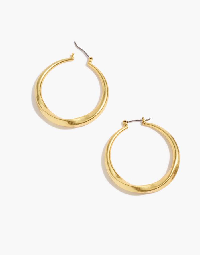 A sized-up take on our best-selling twisted hoops, these gold-plated brass earrings are lightweight enough to layer with others. And, fun fact, the design was inspired by a vintage handbag (yep, the creative process is a mystery). 40 mm x 40 mm.Gold-plated brass.Hypoallergenic titanium posts.Clean your jewelry after each wearing with a soft cloth.Import.Select stores.