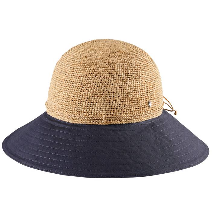 The Kalola by Helen Kaminski combines classic raffia crochet and fine cotton canvas to create a timeless summer staple. Kalola features a wide 4" cotton canvas brim that is UPF 50+ rated for sun protection, while the round crown is crafted from raffia crochet. It has a hand-rolled raffia string along the crown for size adjustments and an elastic inner band for fit and comfort.