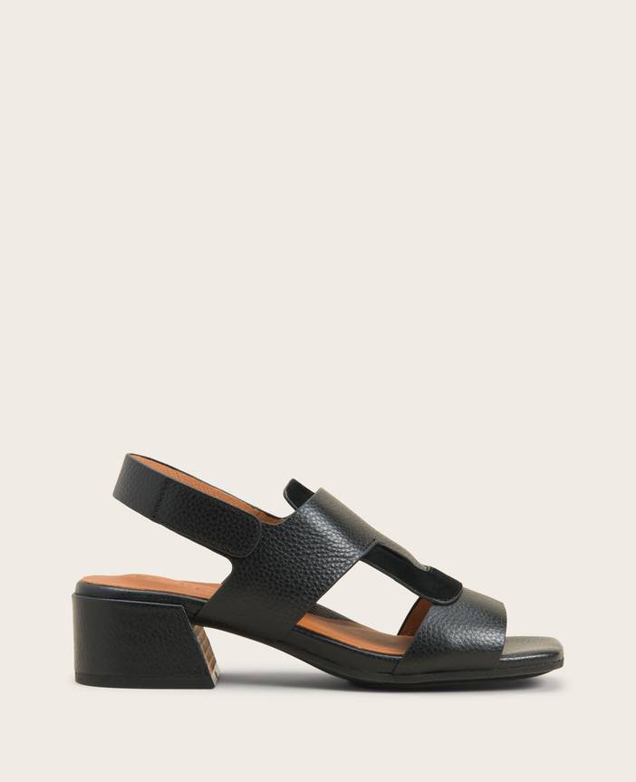 WHAT’S IN IT FOR YOU? Women's leather sandal Side Velcro buckle closure for an adjustable fit Cushioned insole for added comfort Rubber grip sole 2 in. heel height 100% leather Wipe clean Imported Style runs large, size down 1/2 size Style runs large, size down 1/2 size | Gentle Souls | Park Interlock Leather Sandal in Black, Size: 5 by Kenneth Cole