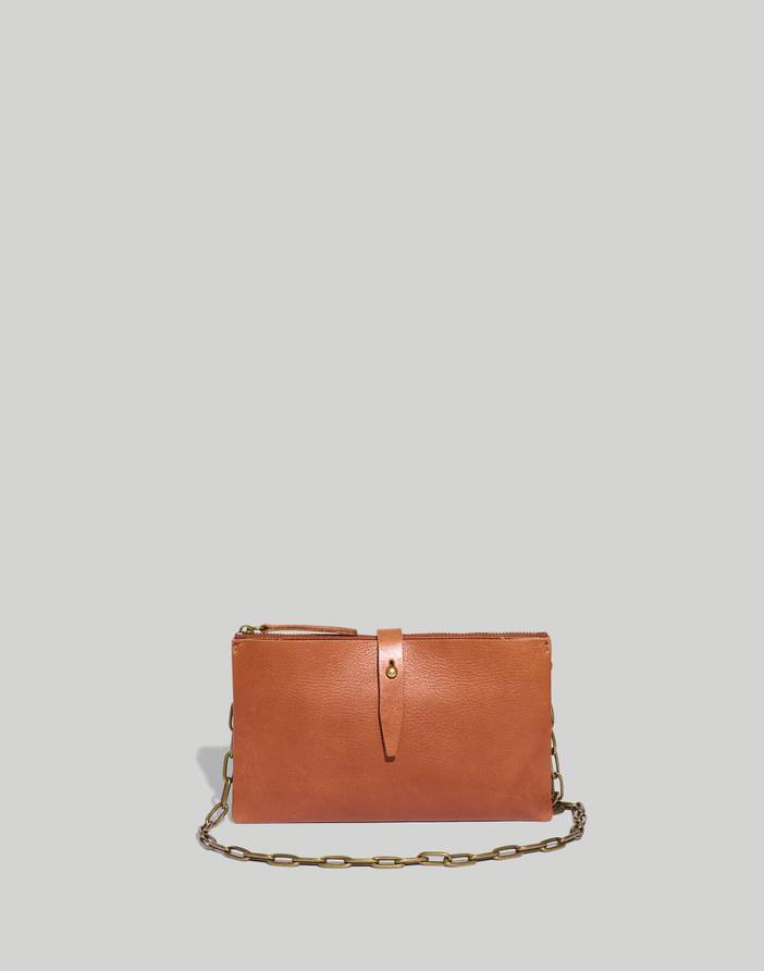 Part of our signature Transport collection, this leather mini bag has a chain crossbody strap that was custom made to sync up with our signature paperclip necklace. A wallet turned going-out necessity, it has an expandable accordion shape, a zip-close compartment with a credit card slot and a slide pocket in front for your ID (it all closes with a secure collar stud).Leather.Do Well: leather sourced from a tannery that achieved a Gold Rating from the Leather Working Group (LWG),an organization that works to promote sustainable environmental practices in the leather industry.Collar stud closure.21 1/2" crossbody drop.4 1/2"H x 8"W.Imported.