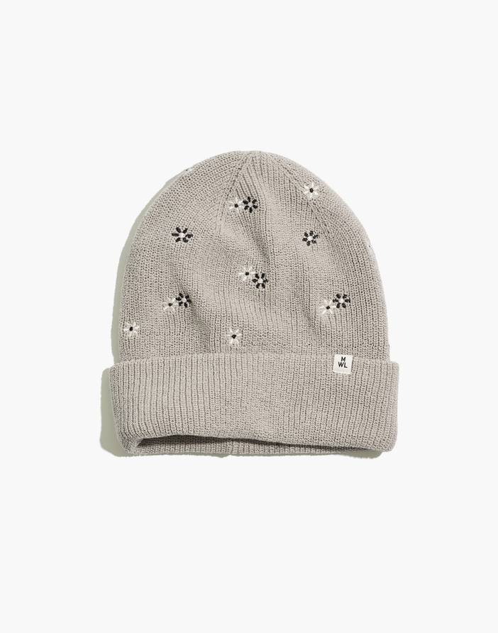 Daisy Embroidered Re(sourced) Cotton MWL Cuffed Beanie