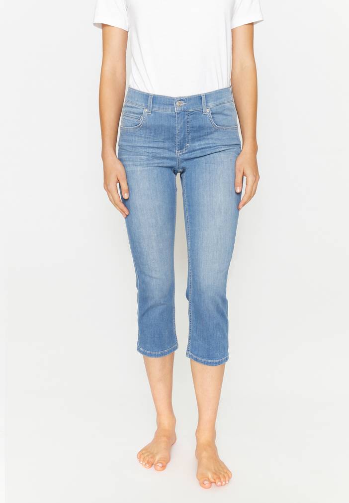 Capri-Jeans und Sommer gehören einfach zusammen. Die ‚Cici TU‘ von Angels wird Ihre perfekte Wahl für luftige Sommeroutfits. Die wadenlange Beinlänge lässt sich dank des geraden Schnitts superleicht auf die gewünschte Höhe hochkrempeln und die Verarbeitung von Angels ‚The Light Denim‘ lässt die Jeans angenehm locker auf der Haut liegen. Die leichte Used-Waschung mit den Falten in der Leistengegend lassen die ‚Cici TU‘ nicht nur wie eine lange getragene Lieblingsjeans wirken, sie fühlt sich auch genauso an. Ein weiterer Vorteil des geraden Schnitts ist, dass er sowohl mit weiten als auch mit enganliegenden Oberteilen kombiniert werden kann.