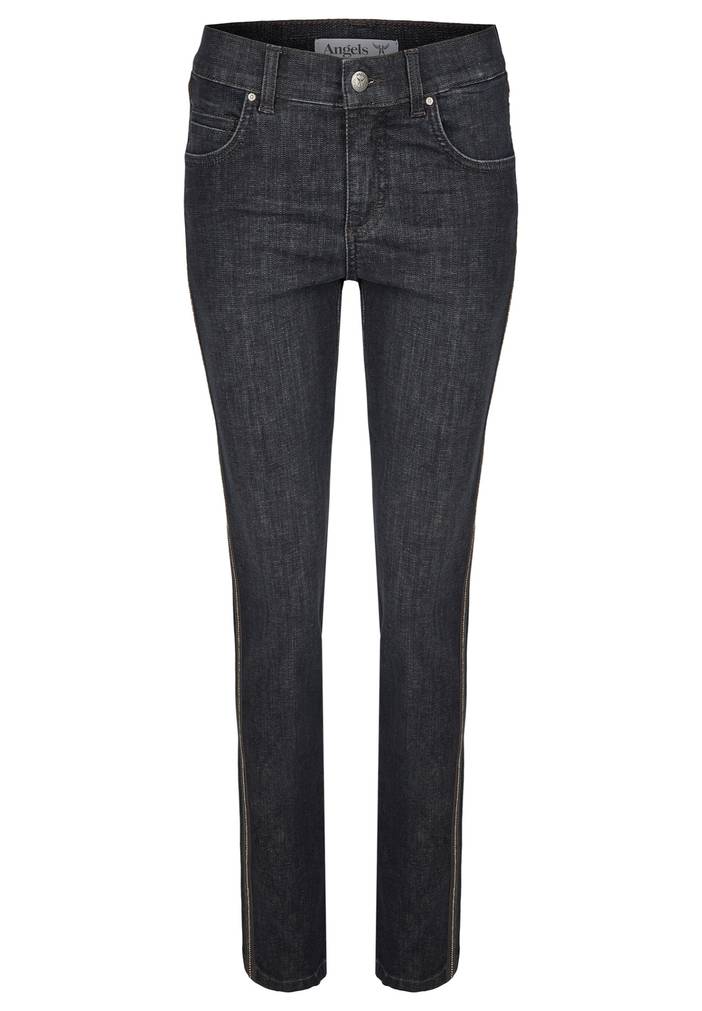 ANGELS präsentiert das Must-Have der Saison mit dieser hippen 5-Pocket-Jeans! Der gerade Schnitt erzeugt eine figurumspielende Passform. Für die modische Optik sorgt ein unifarbener Style. Zusätzlich ist diese Jeans wegen ihrer bequemen Baumwollmischung besonders hautfreundlich. Dank ihres Stretch-Anteils im Material ist sie nicht nur anschmiegsam, sondern bietet auch optimalen Sitz und Bewegungsfreiheit. Sie setzt mit ihren langen Beinen Ihre Figur perfekt in Szene. Glitzergalonstreifen an den Beinen erzeugen strahlende Akzente. Für einen legeren Auftritt kombinieren Sie die 5-Pocket-Jeans sportiv zu Shirt und Sneakern. Enthält nichttextile Teile tierischen Ursprungs.