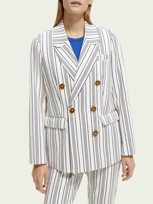 Deze double-breasted blazer mag gewoon niet ontbreken in je garderobe. Hij is veelzijdig genoeg voor een chique look of iets meer casual met een jeans. Deze blazer is verticaal gestreept en heeft klepzakken.