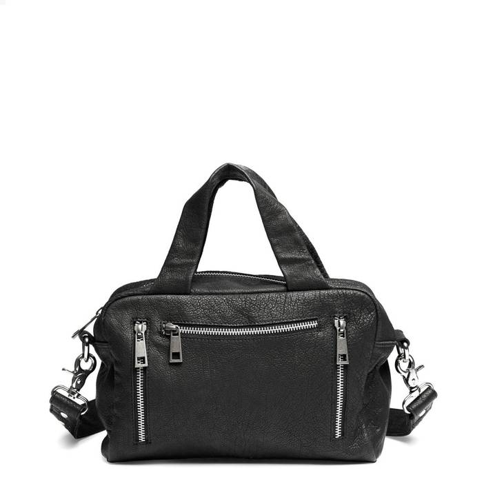Donna's main compartment closes with a zipper. There are three small pockets on the front of the bag which also close with a zip. The bag has a long leather strap which can be adjusted in length and which is removable.
