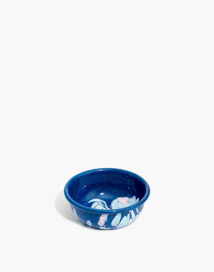Born in Istanbul (and raised all over the world), sisters Basak Onay and Oyku Thurston collaborate with traditional artisans on brightly colored enamelware like this bold marble-patterned bowl. Import.Madewell.com only.