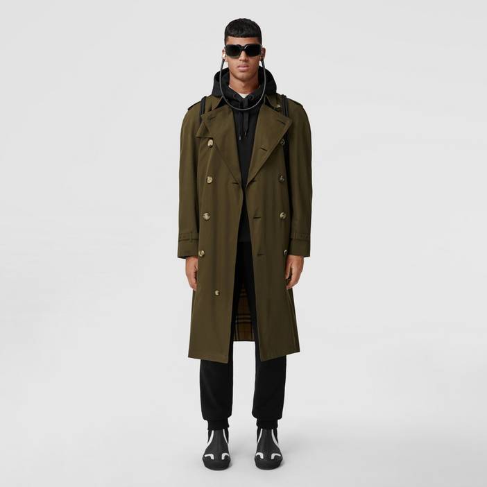 Our signature relaxed-fit trench coat updated in tumbled tropical gabardine for a soft, fluid silhouette. Designed for layering, the archive-inspired style is finished with a contrasting Vintage check lining and undercollar. Coat length: 114cm/44.9in. This is based on a size IT 48 as proportions change slightly according to size. Model's height: 187cm/6ft 1.5in Outer: 100% cotton Vintage check lining: 100% cotton Sleeve lining: 100% viscose Buttons: buffalo horn Buckles: calf leather Double-breasted closure Button-through welt pockets Signature details: epaulettes, hook-and-eye collar closure, gun flap, belted cuffs, D-ring belt, check undercollar, storm shield Specialist dry clean Made in England Alterations can be made using our in-store service. Please see FAQs for details.