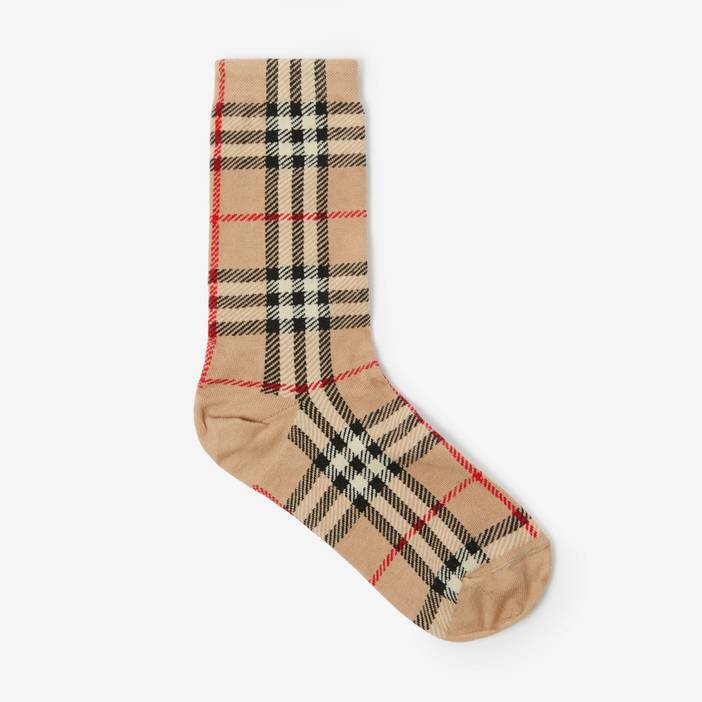 Check Intarsia Technical Stretch Cotton Socks