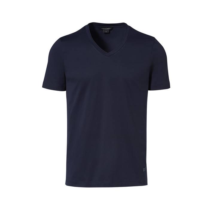 Ein stilsicheres Basic: Das komfortable Porsche Design V-Neck T-Shirt aus Baumwoll-/Elastan-Gemisch ist ein wahres Kombinationstalent. Das gerade geschnittene Herren-T-Shirt mit charakteristischem Doppelkragen am V-Ausschnitt ist aus einem besonders weichen Gewebe gefertigt – für ein maximal angenehmes Tragegefühl.Die perfekte Grundlage für Casual Looks. Der exklusive, merzerisierte Baumwollstoff mit Elastananteil sorgt nicht nur für den perfekten Sitz des T-Shirts, er hat auch eine antitranspirante Wirkung. Intelligente Funktion trifft vollendete Form.DETAILS:Doppelter Porsche Design Signature V-Ausschnitt KragenMerzerisierte Baumwolle mit ElastananteilPerfekte PassformAntitranspirante WirkungAufgedrucktes PD Icon am Saum