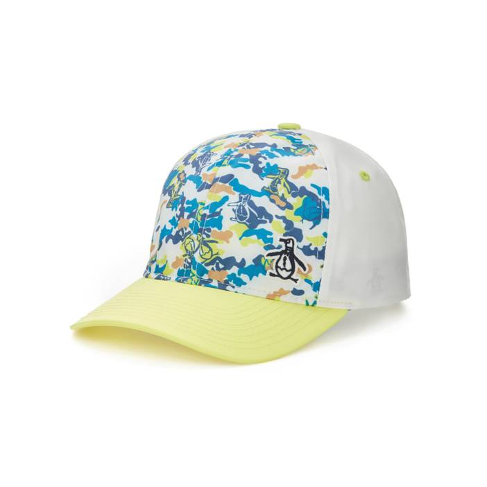 Put the perfect finishing touch on your tennis attire with this Original Penguin tennis hat for men. Featuring a vibrant design, this premium tennis cap delivers the ultimate combination of style, comfort, and sun protection on the court. An adjustable strap closure and stretch material ensure a snug custom fit that feels great. Crafted from high-quality, breathable materials, this tennis sun hat ensures optimal comfort during intense matches and practice sessions. Elevate your game and make a statement with this eye-catching Original Penguin tennis hat. 85% Polyester / 15% Elastane Durable Polyester Construction Enhanced With Stretch For Comfort Adjustable Closure For A Snug Custom Fit Abstract Penguin Pete Design Adds Eye-Catching Style Pete Logo Tag On Closure Hand Wash Imported | Original Penguin Men's Tennis Club Hat in Bright White, Polyester/Elastane | Munsingwear