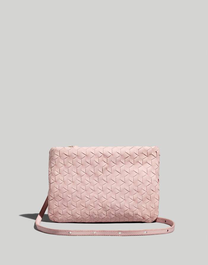 Woven of luxe leather, this dreamy crossbody has the perfect amount of pillow-like puff and custom carabiner hardware. With a handy zip-top closure and interior slip pocket, it can double as a clutch thanks to its removable (and adjustable) shoulder strap.Leather.Zip closure.Imported.Select stores.
