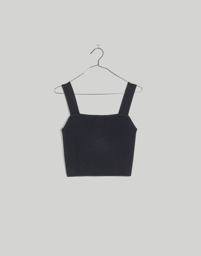 Supercropped and supercute, this sweater tank is perfect for when you want to show a little skin. Throw it on with a pair of high-waisted jeans and the matching cardigan for a twin set moment. Cropped fit.Body length from high point of shoulder: 10 1/4" (based on size M).Lenzing™ Ecovero™ viscose/polyester.Do Well: made of Lenzing™ Ecovero™, a sustainable fabric created with natural fibers and a more eco-friendly process.Machine wash.Import.
