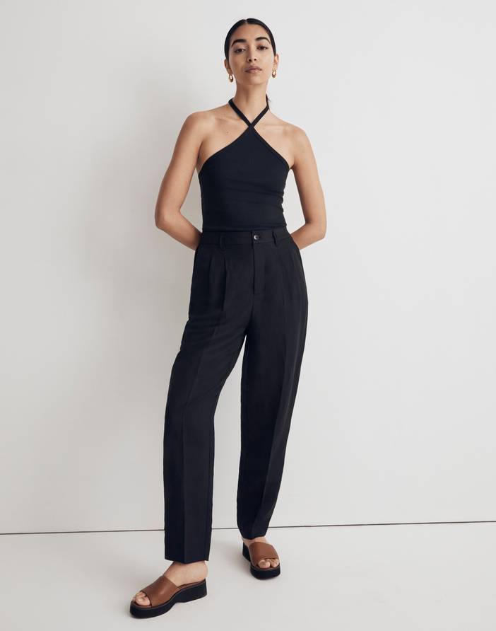 Coming in a breezy and eco-friendly linen and Lenzing™ Ecovero™ blend, our best-selling track pants have a sporty-meets-polished vibe thanks to subtle front pleats and a partially elasticized waist.12 3/4" rise, 14" leg opening, 30" inseam.53% linen/47% Lenzing™ Ecovero™ viscose.Do Well: made with Lenzing™ Ecovero™, a sustainable fabric created with natural fibers and a more eco-friendly process.Machine wash.Import.Madewell.com only.