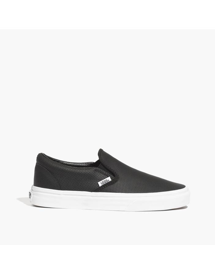 Synonymous with skateboarders, surfers and Southern California (where the brand was founded in 1966), Vans shoes are true sneaker icons. Add some cool to your casual (for years to come) with these timeless slip-ons, done up in perforated leather. When you select your size below, "H" equals a half size. Unisex sizing: Please size down 1 1/2 sizes; a size 4 1/2 is a women's size 6.Leather upper.Vulcanized waffle rubber sole.Import.