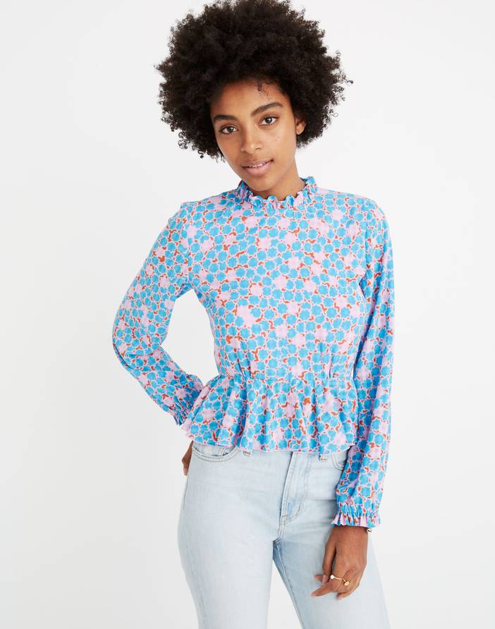 Copenhagen-based Stine Goya started out as a model and fashion editor before turning her highly-developed aesthetic eye to her own designs. Inspired by the art world (this particular collection gives a nod to Italian architecture), she's known for wearable pieces like this ladylike print top with a flattering peplum waist. Regular fit.Body length: 21 1/4".Poly.Machine wash.Import.Madewell.com only.