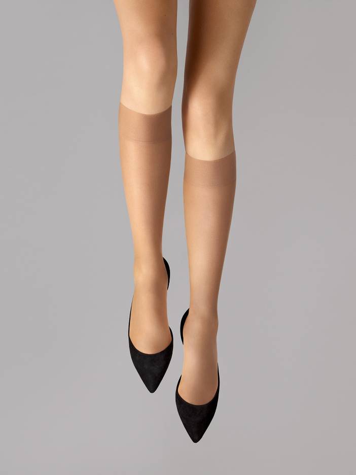 Daily comfort, daily elegance: these summery, transparent knee-highs with a virtually mat look are a basic piece for any day and any occasion for which a natural, well-manicured appearance is necessary.
