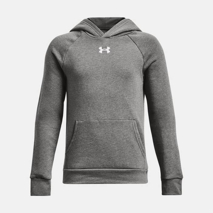 Jongenshoodie Under Armour Rival Fleece Castlerock Light Heather / Wit YXL (160 - 170 cm)