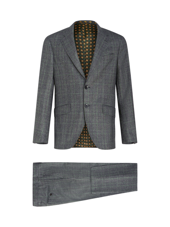 Anzug aus Schurwolle mit einem Check-Motiv in Allover-Optik, gekennzeichnet durch ein Sakko mit Innenfutter, das mit winzigen Krawattenmotiven verziert ist.