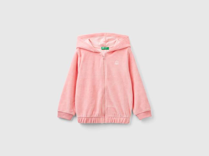 Benetton, Sweatshirt Aus Chenille Mit Reißverschluss Und Kapuze, größe 82, Pink, female