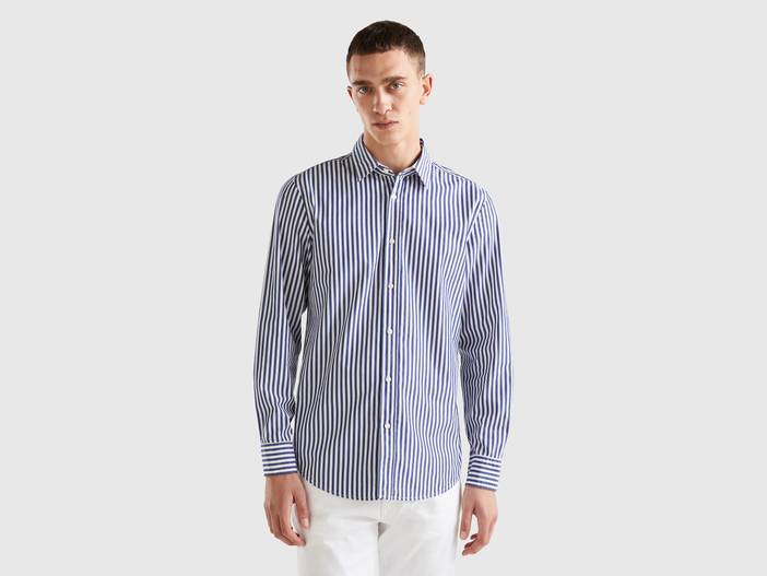 Benetton, Gemustertes Hemd In 100% Bio-baumwolle, größe L, Blau, male
