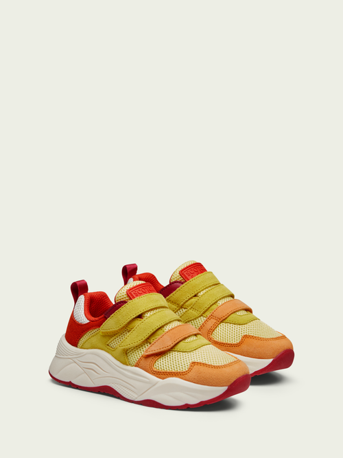 De klassieke Celest-sneakers zijn er nu ook in kleinere maten, maar ze passen perfect bij onze damesversie voor een geweldige Mini Me-combi. Deze sneakers zijn gemaakt van premium suède met nylon in een speels colourblock design. Drie stijlvolle klittenbandsluitingen bieden ondersteuning en ze zijn afgewerkt met een treklus en een chunky rubberzool.