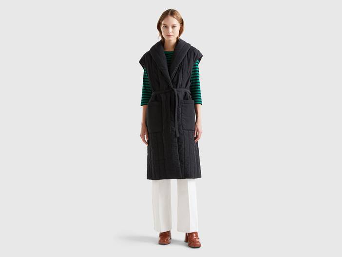 Benetton, Maxi-weste Mit Wattierung Aus Watte, größe L, Schwarz, female