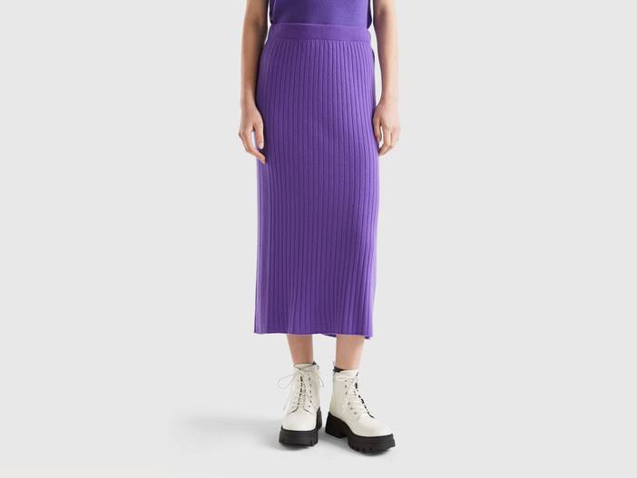 Benetton, Bleistiftrock Aus Strick, größe S, Purpur, female