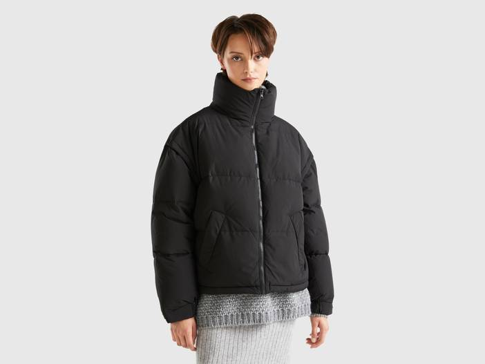 Benetton, Kurze Daunenjacke Mit Abnehmbaren Ärmeln, größe L, Schwarz, female