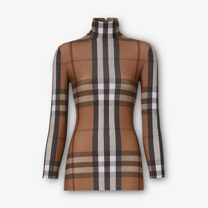 A form-fitting turtleneck top in Italian-knitted check stretch jersey. Top length: 60cm/23.6in. This is based on a size UK S as proportions change slightly according to size. Model's height: 178cm/5ft 11in. Model wears size UK S. 59% polyamide, 41% elastane Concealed back zip closure Machine wash Imported
