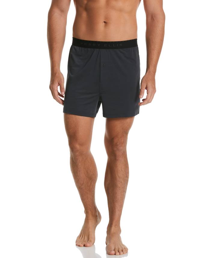 Find wearable, lightweight comfort in Perry Ellis boxers thanks to 4-way stretch fabric. Stretch, run, jump, bend - our fabrics and fits are made to create men's underwear that moves with your every step. A staple in our Perry Ellis Portfolio Collection, because every man needs a signature boxer. 88% Polyester / 12% Spandex Regular Fit Perry Ellis Portfolio 3.5" Inseam Pack of 3 Soft Touch Microfiber 4-Way Stretch to Increase Range of Motion and Comfort Button Closure Machine Washable Imported | Perry Ellis Men's 3 Pack Ebony Solid Luxe Boxer Short in Charcoal/Black, Size Large, Polyester/Spandex, Regular