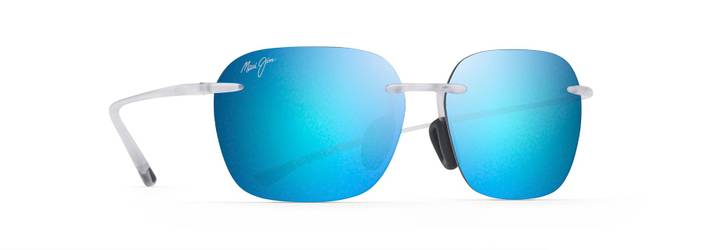 Frame: Crystal Matte Lens: Blue Hawaii - Our blue mirror coating provides a stylish new look that offers the same amazing color enhancement and clarity as all other Maui Jim lenses. Lens Material: MauiPure LT - MauiPure LT is lighter and 27% thinner, and delivers optics nearly as clear as SuperThin Glass with exceptional impact and scratch resistance. Available exclusively in select styles that have been engineered for ultimate weight reduction, performance, and flexibility. Not available in prescription SKU: B446-05CM Lens Details | Fit: (eye) 50, (bridge) 12 (temple) 136, 6-base curve | Maui Jim Komohana Rimless Sunglasses - Crystal Matte Frames with Blue Hawaii Lenses