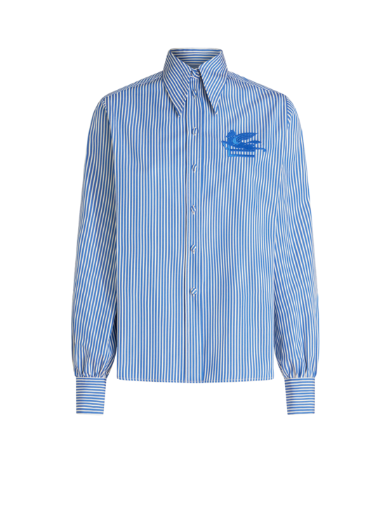 Gestreifte Baumwollbluse mit Maxi-Kragen, veredelt mit dem aufgestickten ETRO Logo und Pegaso.
