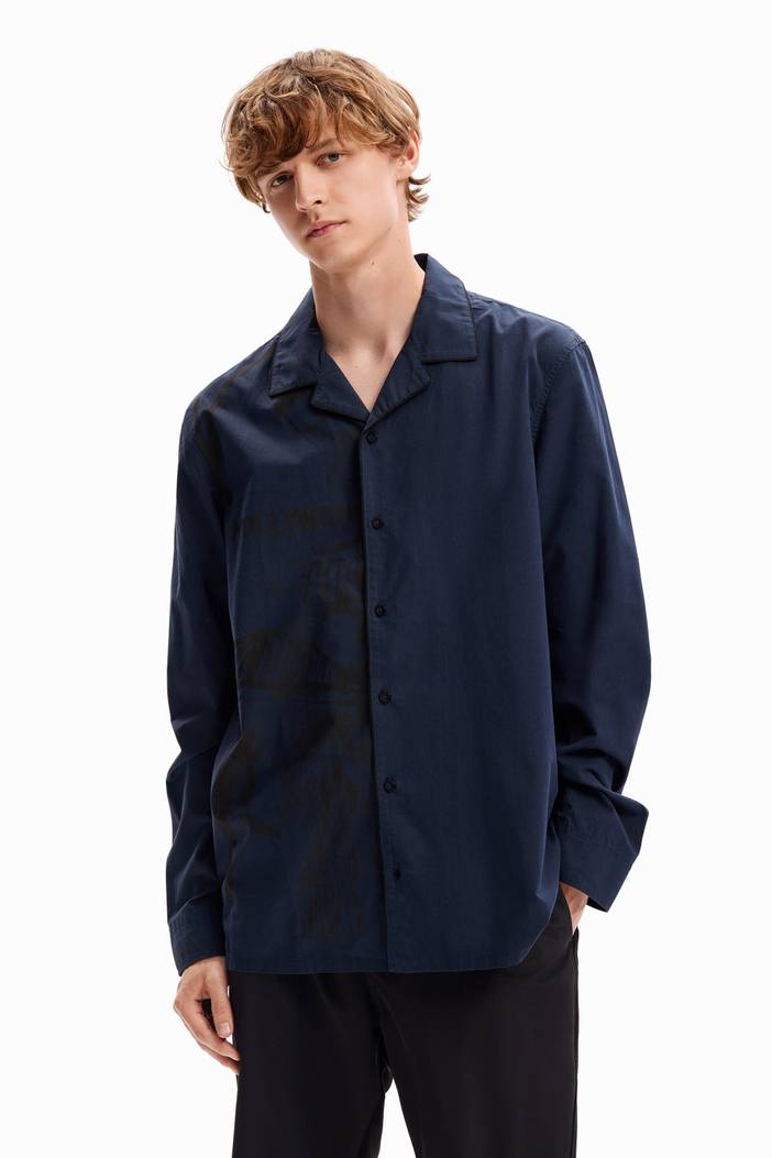 A long-sleeve shirt in pyjama-style poplin with side slits and illustrations by designer Javier Mariscal.