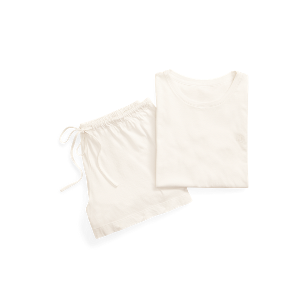Dieser Pyjama aus einer weichen Baumwollmischung verspricht mit seinem zarten, kurzärmligen T-Shirt mit Lochstickerei und den luftigen Shorts einen erholsamen Schlaf.